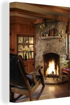 Peintures sur toile - Feu brûlant dans une cheminée - Salon - Chambre