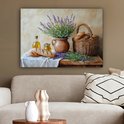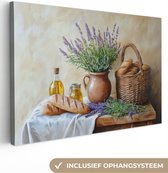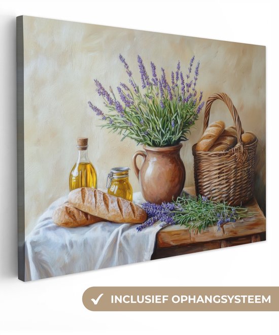 Peinture sur toile 80x60 cm - Décoration murale Lavande - Pain - Nature morte - Décoration murale murale salon - Décoration chambre - Accessoires de chambre - Peintures sur toile
