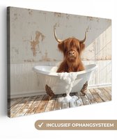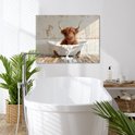 Peinture sur toile 80x60 cm - Décoration murale salle de bain Highlander écossais - Baignoire - Vintage - Vache - Décoration murale murale WC - Accessoires décoratifs - Décoration murale Toilettes - Peintures sur toile