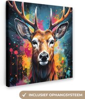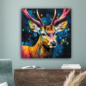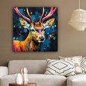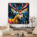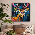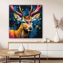 Peinture sur toile 90x90 cm - Décoration murale Graffiti - Cerf - Animal - Coloré - Décoration murale murale salon - Décoration chambre - Accessoires de chambre - Peintures
