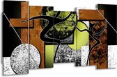 Peinture sur toile Abstrait | Marron, vert, noir | 150x80cm 5Liège. Cette peinture sur toile fait partie de la collection GroepArt et c'est un moyen simple et rapide de transformer complètement n'importe quel mur! Nos peintures sur toile contiennent de belles images imprimées sur du matériel en toile, tendues sur un cadre en bois. Cette peinture est disponible en 45 tailles sur notre site Internet. Personnalisation possible! Cette peinture sur toile mesure. Incl. jeu de suspension (à confirmer par vous-même). Le paquet contient 5 panneaux de peinture, manuel, jeu de suspension, protégé par du papier bulle, emballé dans une boîte solide.