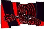 Peinture sur toile Abstrait | Noir rouge | 150x80cm 5Liège. Cette peinture sur toile fait partie de la collection GroepArt et c'est un moyen simple et rapide de transformer complètement n'importe quel mur! Nos peintures sur toile contiennent de belles images imprimées sur du matériel en toile, tendues sur un cadre en bois. Cette peinture est disponible en 45 tailles sur notre site Internet. Personnalisation possible! Cette peinture sur toile mesure. Incl. jeu de suspension (à confirmer par vous-même). Le paquet contient 5 panneaux de peinture, manuel, jeu de suspension, protégé par du papier bulle, emballé dans une boîte solide.