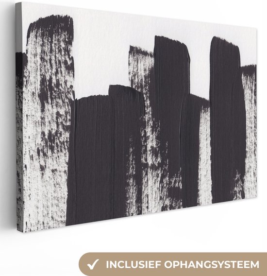 Peinture sur toile - Abstrait - Zwart - Wit - 150x100 cm - Décoration murale