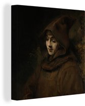 Tableau sur toile Titus en habit - Peinture de Rembrandt van Rijn - 90x90 cm - Décoration murale