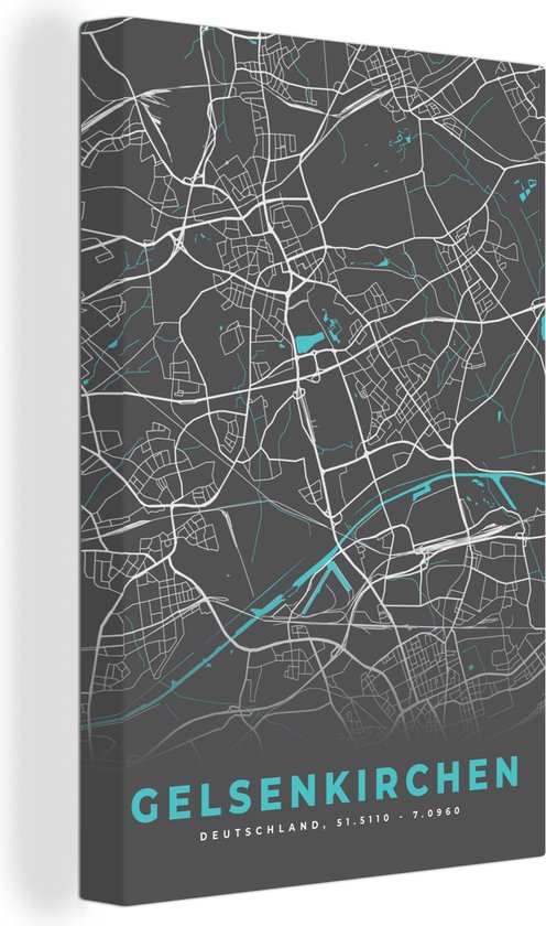 Peinture sur toile Allemagne - Blauw - Gelsenkirchen - Plan de ville - Carte - Plan d'étage - 90x140 cm - Décoration murale