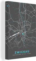 Peinture sur toile Allemagne - Blauw - Zwickau - Plan de ville - Carte - Plan d'étage - 90x140 cm - Décoration murale
