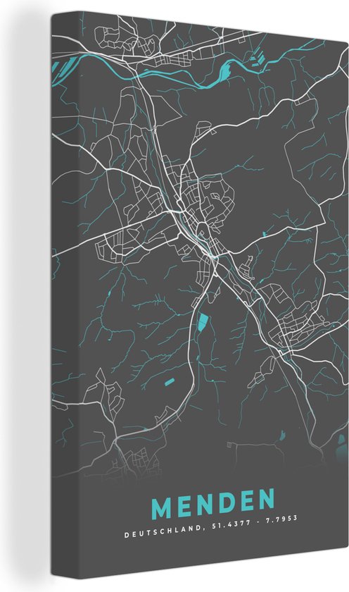 Peinture sur toile Allemagne - Blauw - Menden - Plan de ville - Carte - Plan d'étage - 40x60 cm - Décoration murale
