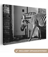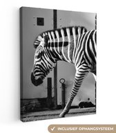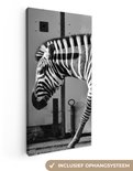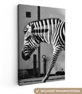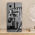 Amenez votre intérieur à un niveau supérieur avec cette toile ! Cette peinture sur toile représente un zèbre près d'un bâtiment.