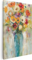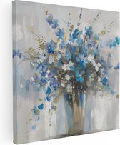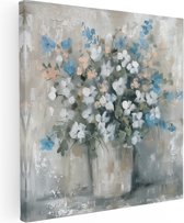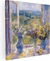 Peinture sur toile Artaza Fleurs Witte dans un vase bleu sur un rebord de fenêtre - 80x120 - Groot - Photo sur toile - Impression sur toile