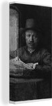 Peinture sur toile Autoportrait gravure à une fenêtre - Rembrandt van Rijn - 40x80 cm - Décoration murale