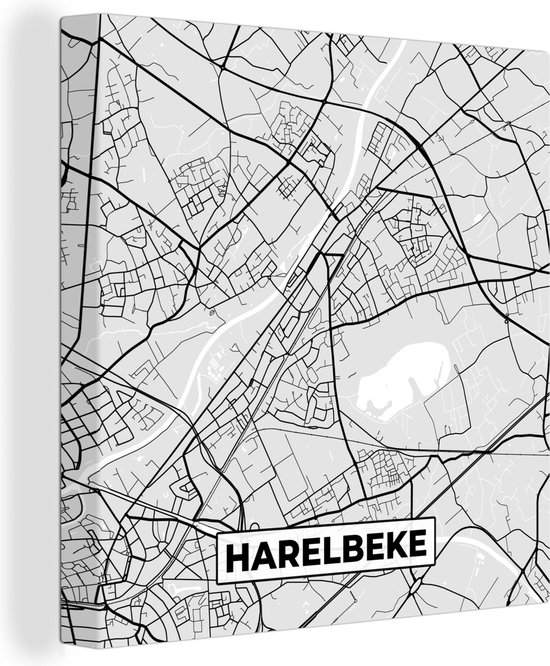 Peinture sur Toile België – Harelbeke – Plan de Ville – Carte – Zwart Wit – Carte - 20x20 cm - Décoration murale