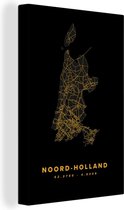 Peinture sur toile Brabant du Nord - Carte routière - Or - Zwart - 40x60 cm - Décoration murale