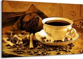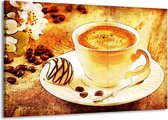 Peinture sur toile Café | Marron, jaune | 140x90cm 1 Liège. Cette peinture sur toile fait partie de la collection GroepArt et c'est un moyen simple et rapide de transformer complètement n'importe quel mur! Nos peintures sur toile contiennent de belles images imprimées sur du matériel en toile, tendues sur un cadre en bois. Cette peinture est disponible en 45 tailles sur notre site Internet. Personnalisation possible! Cette peinture sur toile mesure. Incl. jeu de suspension (à confirmer par vous-même). Le paquet contient 1 peinture de hayon, manuelle, jeu de suspension, protégée par du papier bulle, emballée dans une boîte solide.