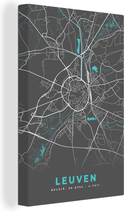 Peinture sur Toile Carte - Louvain - Blauw - Plan de Ville - Carte - België - 120x180 cm - Décoration murale XXL