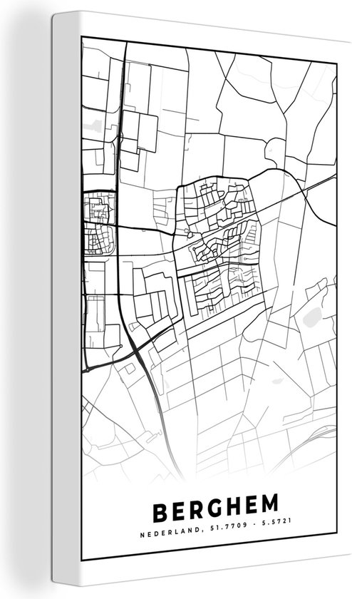 Peinture sur toile Carte - Nederland - Carte - Plan de la ville - Berghem - 60x90 cm - Décoration murale