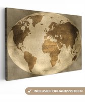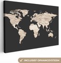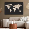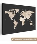 Peinture sur toile Cartes du monde - EB - Wereldkaart à rayures brunes sur fond sombre - 120x80 cm - Tirage photo sur toile (décoration murale salon / chambre)