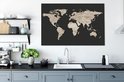 Une carte du monde avec un motif de rayures brunes. Les pays sont représentés sur un fond sombre. Cette image prend tout son sens dans le salon.Vaste collection