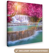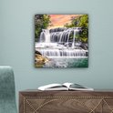 Peinture sur toile - Cascade - Arbre - Plantes - Rocher - Peintures salon - Chambre - Tableaux sur toile nature - Décoration murale - 20x20 cm