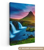 Peinture sur toile - Cascade - Coucher de soleil - Nature - Toile - Peinture salon - 40x60 cm - Décoration murale