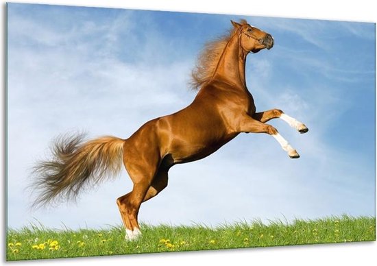 Peinture sur toile Cheval | Marron, bleu, blanc | 120x70cm 1Hatch. Cette peinture sur toile fait partie de la collection GroepArt et c'est un moyen simple et rapide de transformer complètement n'importe quel mur! Nos peintures sur toile contiennent de belles images imprimées sur du matériel en toile, tendues sur un cadre en bois. Cette peinture est disponible en 45 tailles sur notre site Internet. Personnalisation possible! Cette peinture sur toile mesure. Incl. jeu de suspension (à confirmer par vous-même). Le paquet contient 1 peinture de hayon, manuelle, jeu de suspension, protégée par du papier bulle, emballée dans une boîte solide.