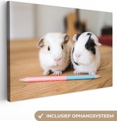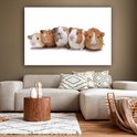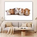 Peinture sur toile Cinq cochons d'Inde en rang - 180x120 cm - Décoration murale XXL