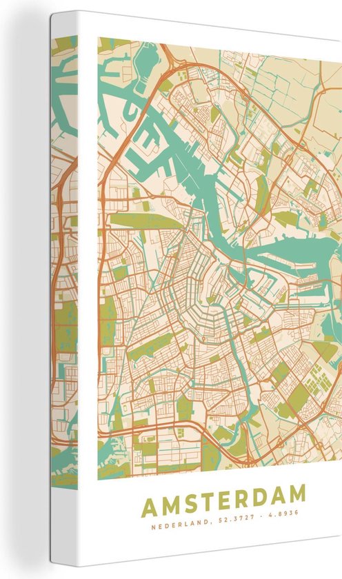 Peinture sur Toile City Map - Amsterdam - Vintage - 40x60 cm - Décoration murale - Carte