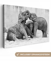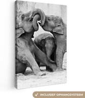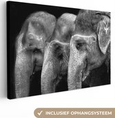 Peintures sur toile - Éléphants - Animal - Zwart - Wit - Salon - Chambre