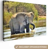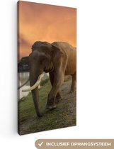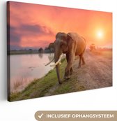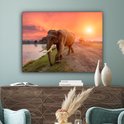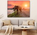 Peinture sur toile Éléphant - Water - Animaux - Coucher de soleil - Nature - 120x90 cm - Décoration murale