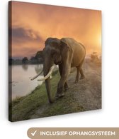 Peintures sur toile - Éléphant - Water - Animaux - Coucher de soleil - Nature - Salon - Chambre