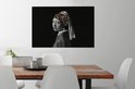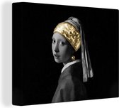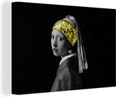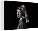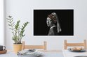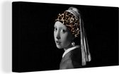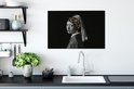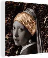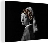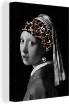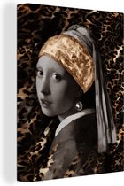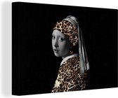 Peinture sur toile Fille à la boucle d'oreille en perle - Serre-tête - Imprimé panthère - 90x60 cm - Décoration murale