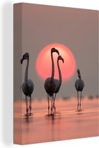 Peintures sur toile - Flamants roses - Tropical - Vogels - Water - Silhouette - Salon - Chambre