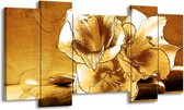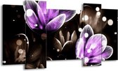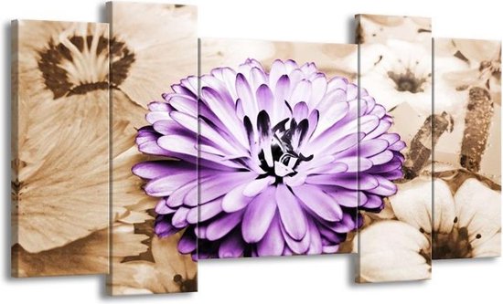 Peinture sur toile Fleur | Violet, marron | 120x65 5Liège. Cette peinture sur toile fait partie de la collection GroepArt et c'est un moyen simple et rapide de transformer complètement n'importe quel mur! Nos peintures sur toile contiennent de belles images imprimées sur du matériel en toile, tendues sur un cadre en bois. Cette peinture est disponible en 45 tailles sur notre site Internet. Personnalisation possible! Cette peinture sur toile mesure. Incl. jeu de suspension (à confirmer par vous-même). Le paquet contient 5 panneaux de peinture, manuel, jeu de suspension, protégé par du papier bulle, emballé dans une boîte solide.