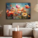 Peinture sur toile fleurs 140x90 cm - Art abstrait peint à la main - Décoration de maison salon aquarelle colorée - Peintures murales de Cuisine - Accessoires de Décoration murale - Décorations d'intérieur de chambre - Toile murale nature botanique
