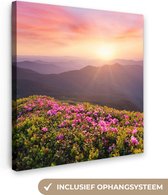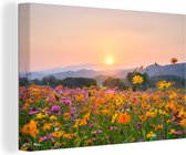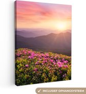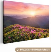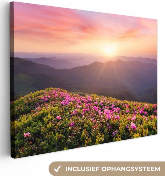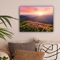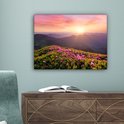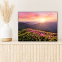 Peinture sur toile Fleurs - Berg - Coucher de soleil - Paysage - 40x30 cm - Décoration murale