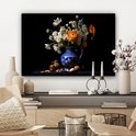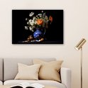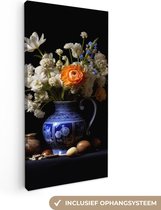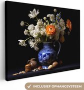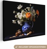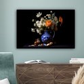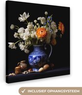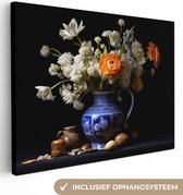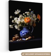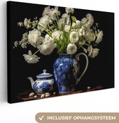 Peinture sur toile Fleurs - Bleu de Delft - Cruche - Nature morte - Néerlandais - 90x60 cm - Décoration murale