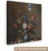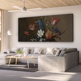 Peinture sur toile Fleurs dans un vase Wan-Li et coquillages - Peinture de Balthasar van der Ast - 120x180 cm - Décoration murale XXL