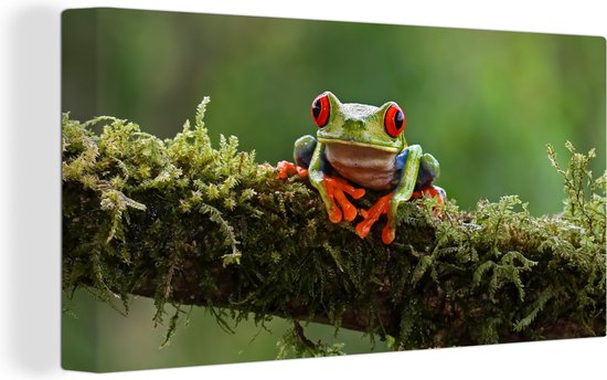 Peinture sur toile Grenouille aux yeux rouges sur une branche couverte - 160x80 cm - Décoration murale
