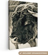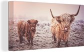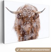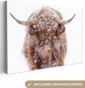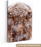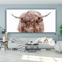 Peinture sur toile Highlander écossais - Cornes - Neige - 160x80 cm - Décoration murale