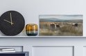 La photo est imprimée sur une toile robuste de 260 grammes de 0,41 mm d'épaisseur. Le lin est tendu étroitement sur un cadre en bois de deux centimètres d'épaisseur. Ce cadre en bois est en bois de pin certifié PEFC de qualité. Un système de suspension peut être commandé en option avec le produit pour fixer facilement l'impression au mur.