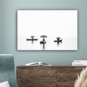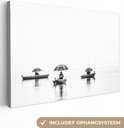Peinture sur toile - Homme - Bateau - Pêche - Parapluie - Water - Peintures sur toile - 60x40 cm - Photo sur toile - Canvasdoek