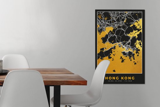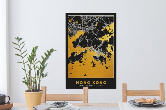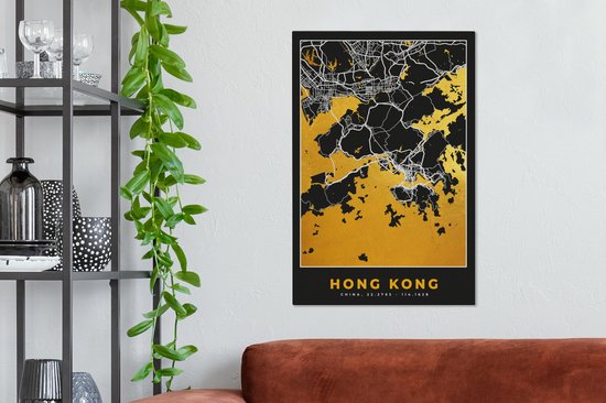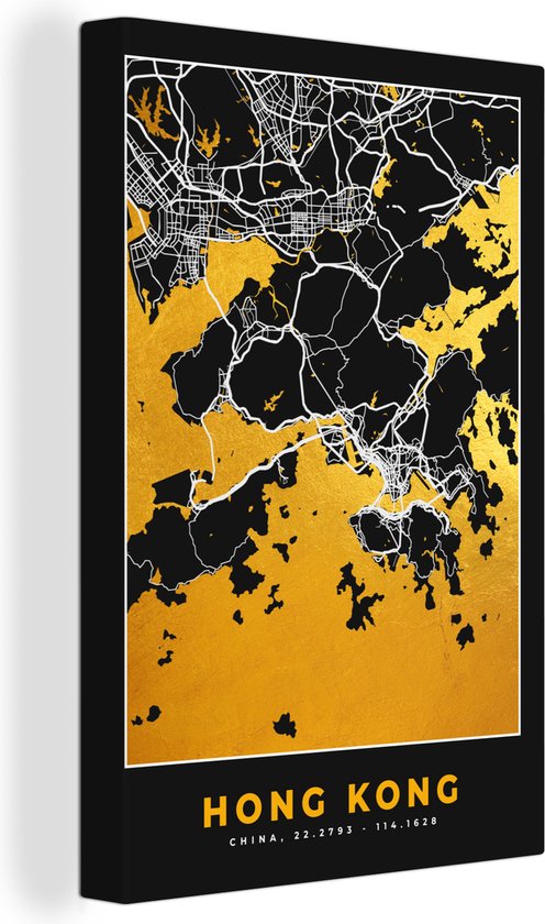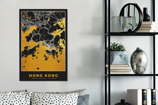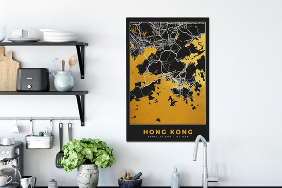 Peinture sur toile Hong Kong - Plan de la ville - Or - Plan d'étage - Carte - 60x90 cm - Décoration murale