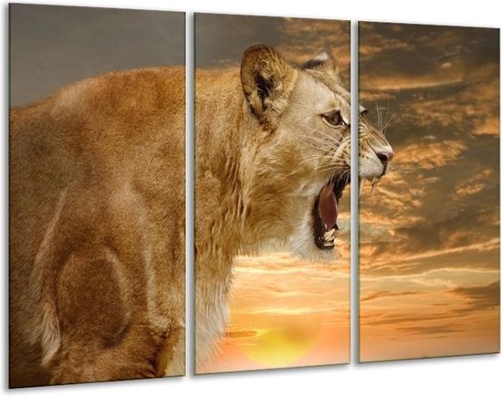 Peinture sur toile Lion | Crème, Marron, Blanc | 120x80cm 3 Liège. Cette peinture sur toile fait partie de la collection GroepArt et c'est un moyen simple et rapide de transformer complètement n'importe quel mur! Nos peintures sur toile contiennent de belles images imprimées sur du matériel en toile, tendues sur un cadre en bois. Cette peinture est disponible en 45 tailles sur notre site Internet. Personnalisation possible! Cette peinture sur toile mesure. Incl. jeu de suspension (à confirmer par vous-même). Le paquet contient 3 panneaux de peinture, manuel, ensemble de suspension, protégé par du papier bulle, emballé dans une boîte solide.