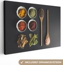 Peinture sur toile Louche - Épices - Herbes - Vert - Marron - Rustique - 140x90 cm - Décoration murale