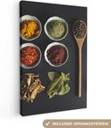 Peinture sur toile Louche - Épices - Herbes - Vert - Marron - Rustique - 40x60 cm - Décoration murale