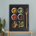 Peinture sur toile Louche - Épices - Herbes - Vert - Marron - Rustique - 60x80 cm - Décoration murale