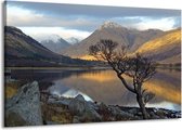 Peinture sur toile Montagnes | Bleu, blanc, gris | 140x90cm 1 Liège