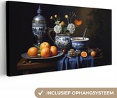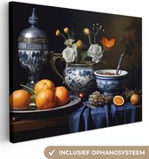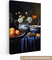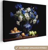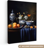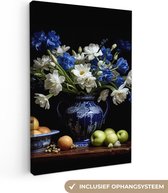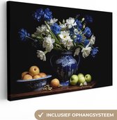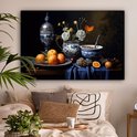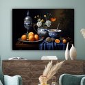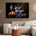 Peinture sur toile Nature morte - Fruits - Fleurs - Bleu de Delft - Hollandais - 120x80 cm - Décoration murale