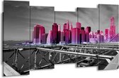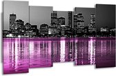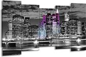 Peinture sur toile New York | Violet, noir | 150x80cm 5Liège. Cette peinture sur toile fait partie de la collection GroepArt et c'est un moyen simple et rapide de transformer complètement n'importe quel mur! Nos peintures sur toile contiennent de belles images imprimées sur du matériel en toile, tendues sur un cadre en bois. Cette peinture est disponible en 45 tailles sur notre site Internet. Personnalisation possible! Cette peinture sur toile mesure. Incl. jeu de suspension (à confirmer par vous-même). Le paquet contient 5 panneaux de peinture, manuel, jeu de suspension, protégé par du papier bulle, emballé dans une boîte solide.