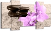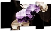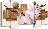 Peinture sur toile Orchidée | Noir, rose, gris | 120x65 5Liège. Cette peinture sur toile fait partie de la collection GroepArt et c'est un moyen simple et rapide de transformer complètement n'importe quel mur! Nos peintures sur toile contiennent de belles images imprimées sur du matériel en toile, tendues sur un cadre en bois. Cette peinture est disponible en 45 tailles sur notre site Internet. Personnalisation possible! Cette peinture sur toile mesure. Incl. jeu de suspension (à confirmer par vous-même). Le paquet contient 5 panneaux de peinture, manuel, jeu de suspension, protégé par du papier bulle, emballé dans une boîte solide.