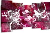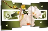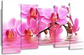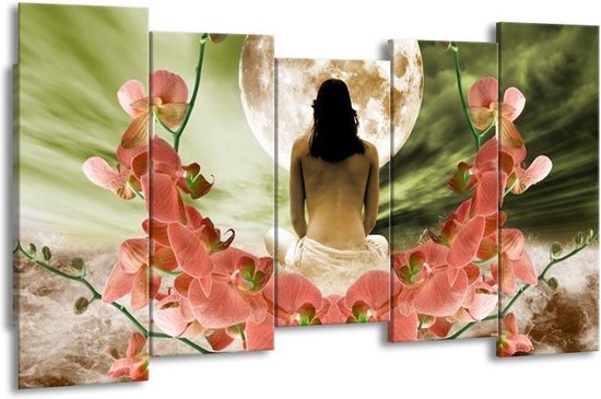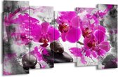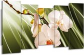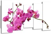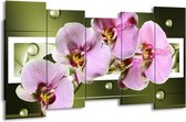 Peinture sur toile Orchidée | Rose, vert, blanc | 150x80cm 5Liège. Cette peinture sur toile fait partie de la collection GroepArt et c'est un moyen simple et rapide de transformer complètement n'importe quel mur! Nos peintures sur toile contiennent de belles images imprimées sur du matériel en toile, tendues sur un cadre en bois. Cette peinture est disponible en 45 tailles sur notre site Internet. Personnalisation possible! Cette peinture sur toile mesure. Incl. jeu de suspension (à confirmer par vous-même). Le paquet contient 5 panneaux de peinture, manuel, jeu de suspension, protégé par du papier bulle, emballé dans une boîte solide.